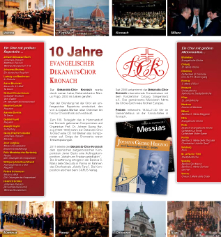 Der Dekanats - Chor Kronach wurde 2003 durch seinen Leiter, Dekanatskantor Marius Popp, gegründet. Auf seinem Programm stehen sowohl a-cappella- als auch große oratorische Werke mit Orchester wie Weihnachtsoratorium 1-6, Johannes- und Matthäus- Passion von Bach, Beethovens 9. Symphonie, Bruckners Messe Nr. 3 f-Moll und Te Deum, Schöpfung von Haydn, Messias von Händel, Dvořáks Te Deumund Messe D-Dur, Paulus von Mendelssohn, Krönungsmesse und Requiem von Mozart, Duruflés und Faurés Requiem und SchumannsMesse D-Dur.